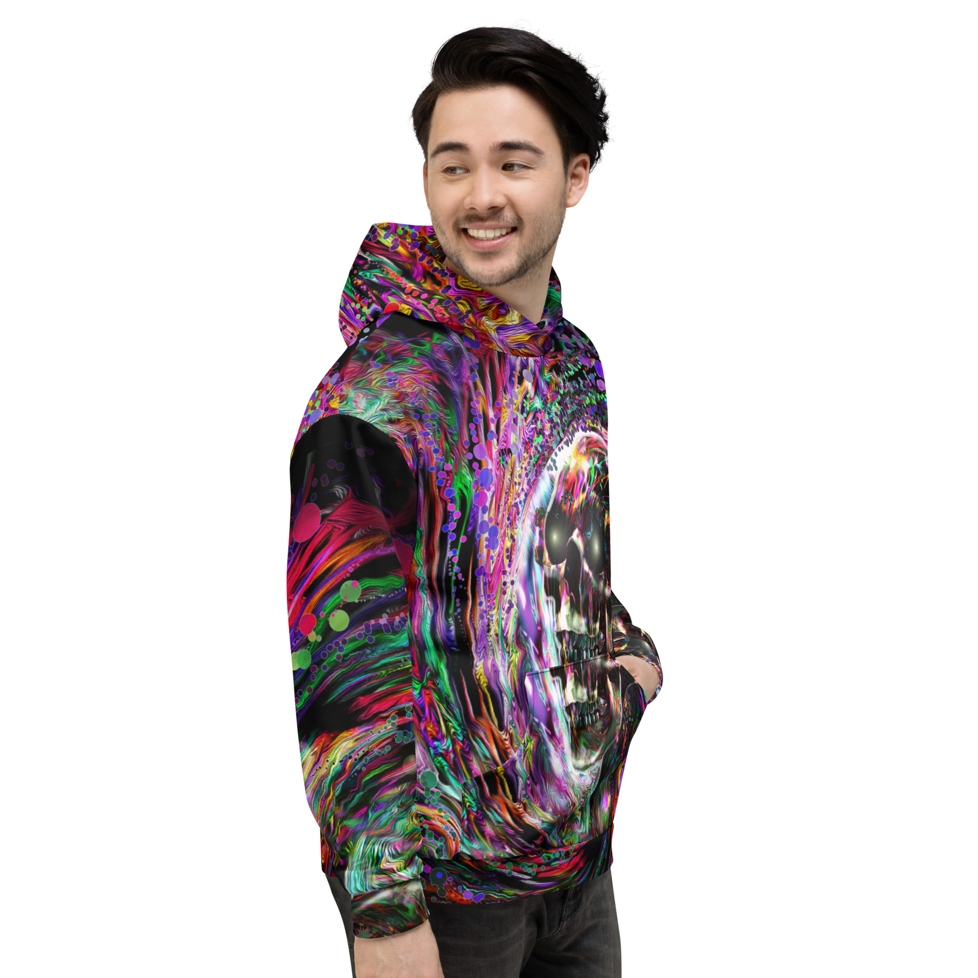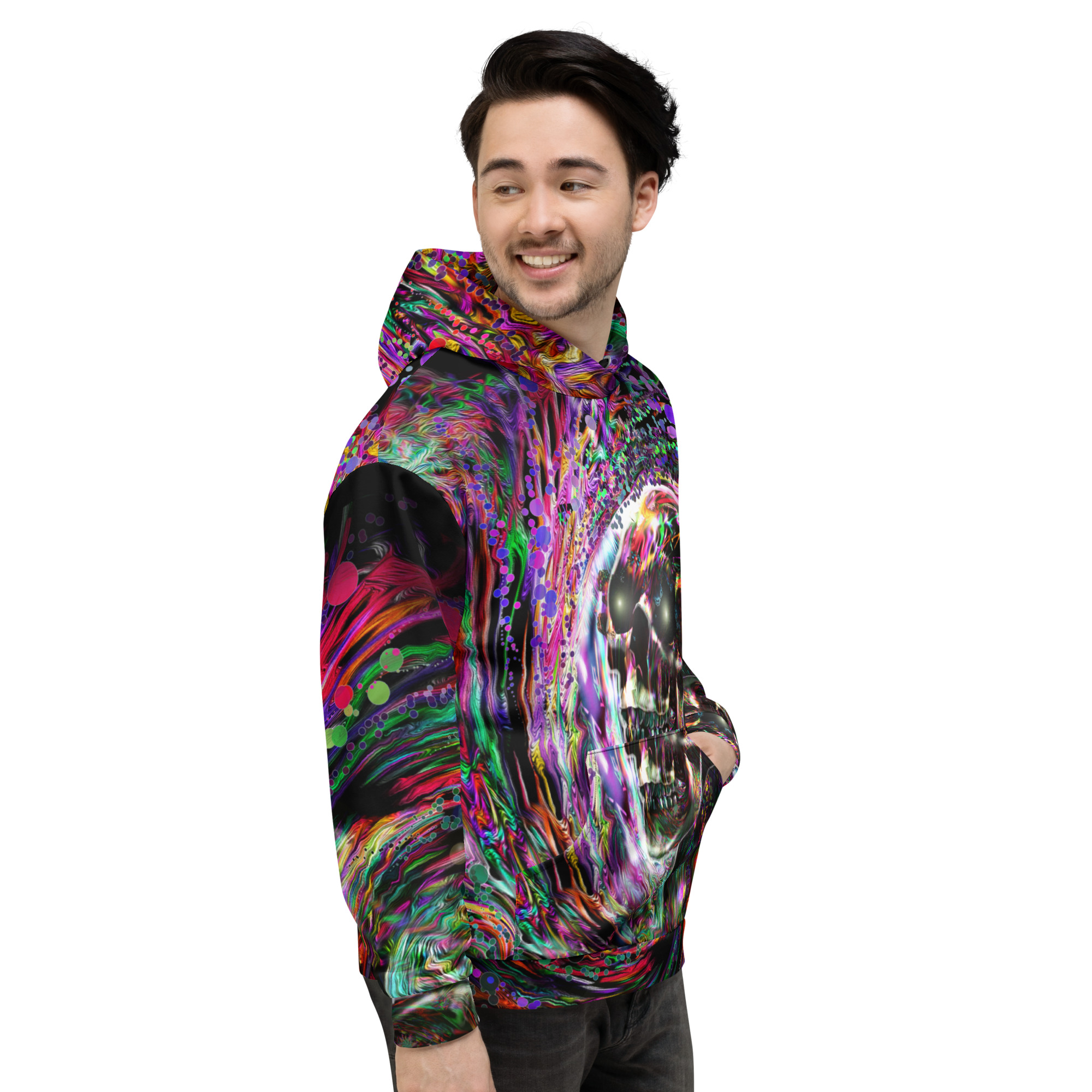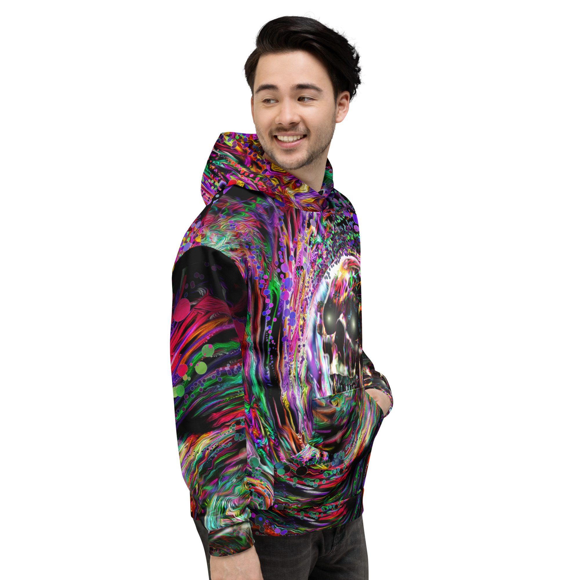 This comfy unisex hoodie has a soft outside with a vibrant print and an even softer brushed fleece inside. The hoodie has a relaxed fit, and it’s perfect for wrapping yourself into on a chilly evening.