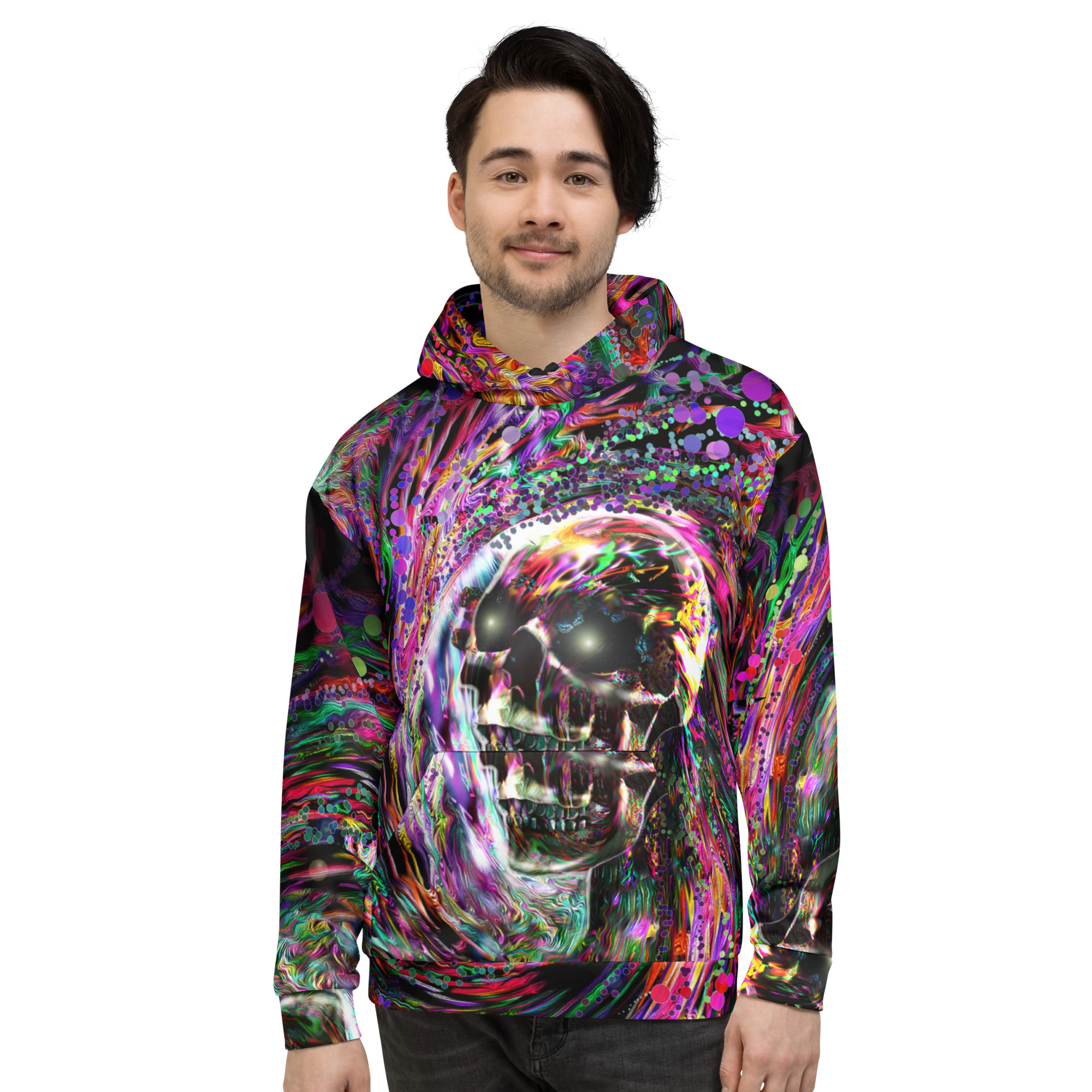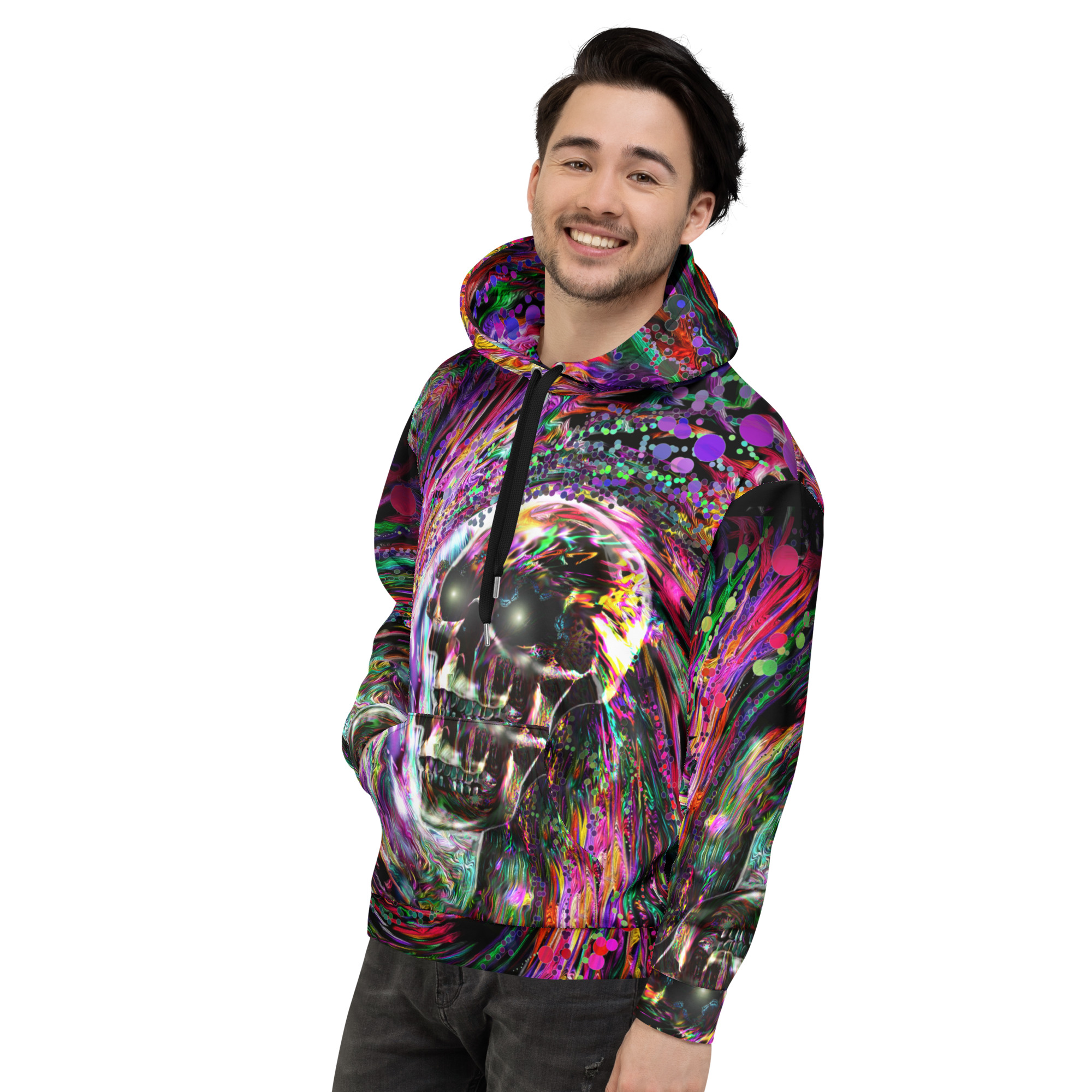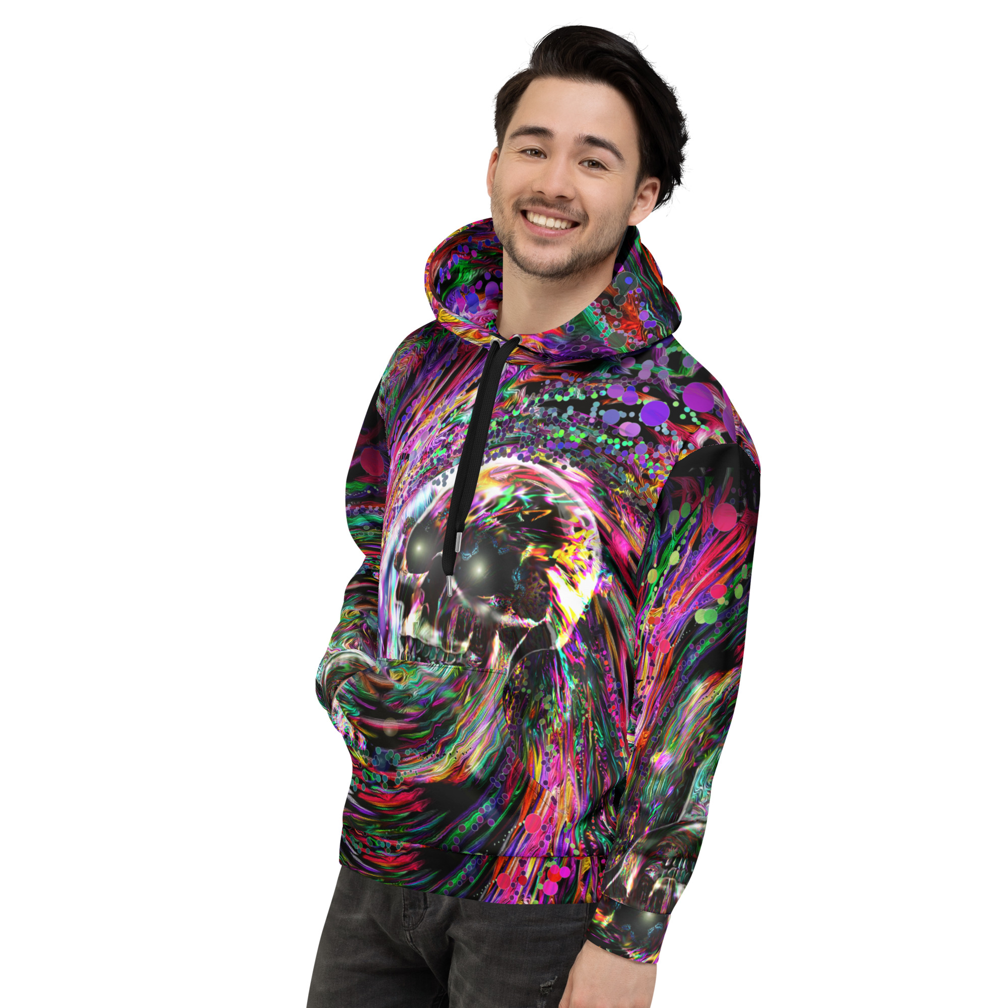 This comfy unisex hoodie has a soft outside with a vibrant print and an even softer brushed fleece inside. The hoodie has a relaxed fit, and it’s perfect for wrapping yourself into on a chilly evening.