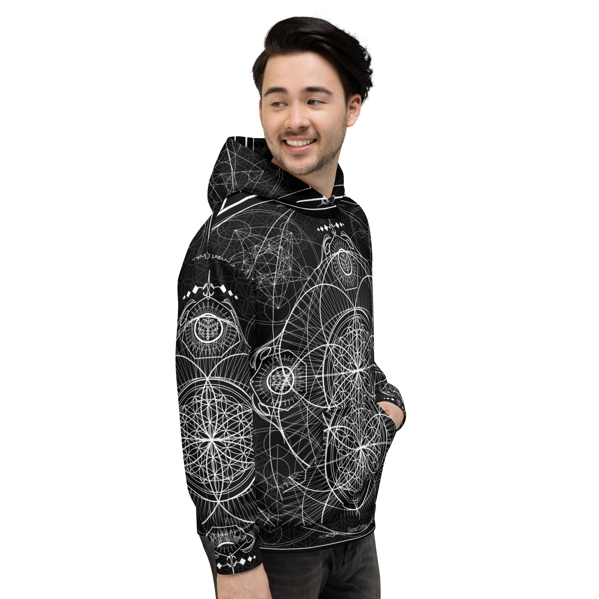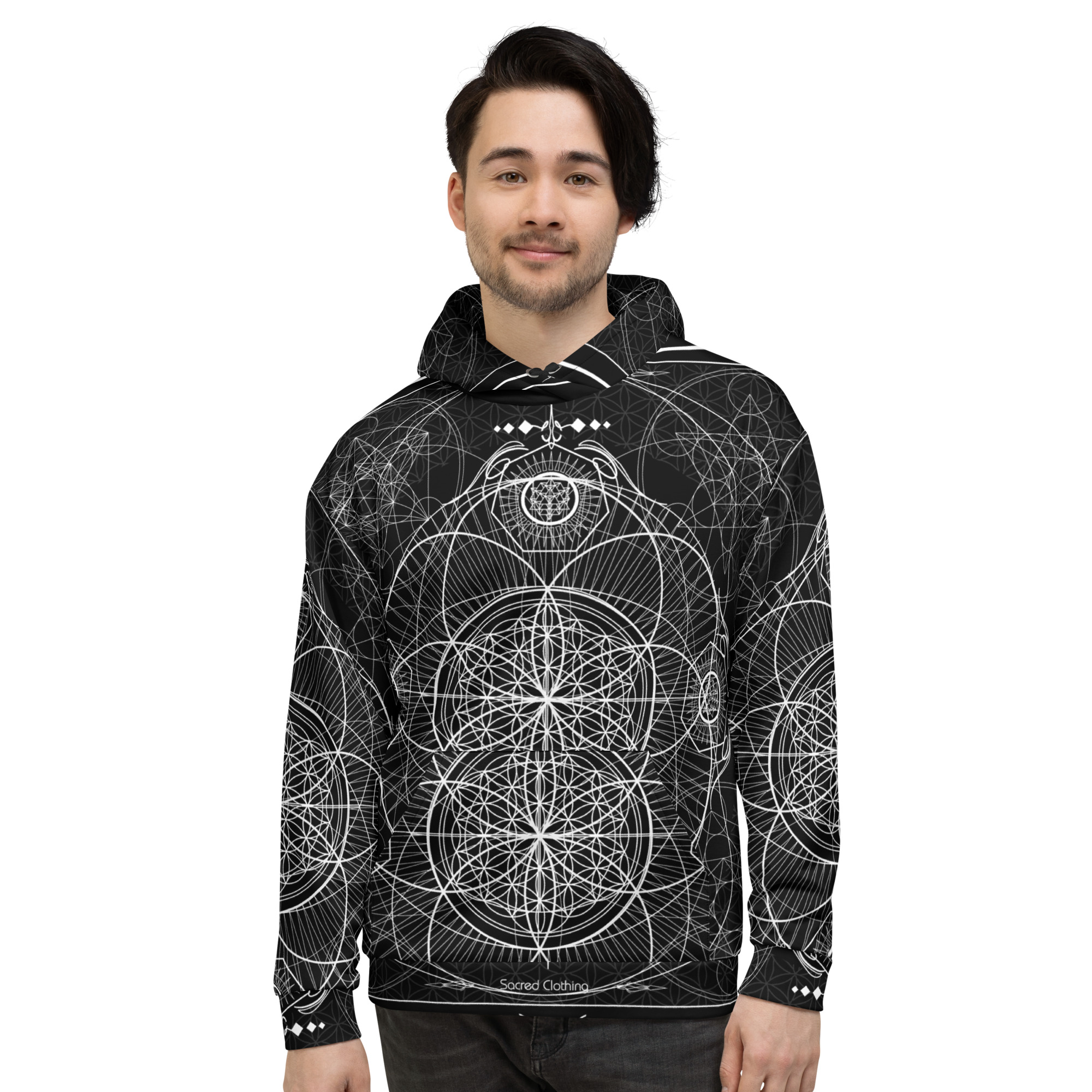 Step into visionary design with the **Sacred Hoodie**, featuring the timeless **Seed of Life** motif and intricate **Art Nouveau-inspired patterns**, brought to life by **Paulie Mann**, renowned digital and traditional artist. Crafted before the AI era, Paulie’s work reflects a deep connection to sacred geometry, ancient symbolism, and modern artistry.
